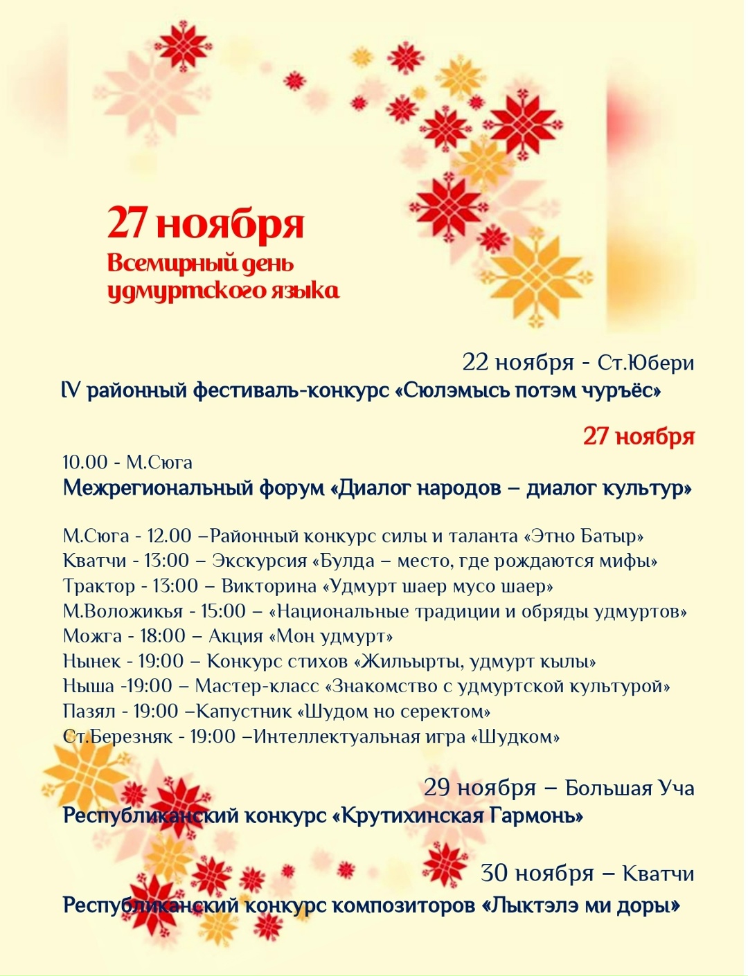 27 ноября - Всемирный день удмуртского языка!Клубные учреждения Можгинского района приглашают на тематические мероприятия.![]() |