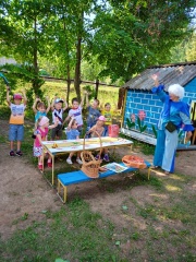 Дети играли, отгадывали загадки о лете, участвовали в викторине «Герои любимых сказок» Ребятам предстояло совершить путешествие в лето с Клоунессой, которая пришла к ним в гости, делая полезные остановки: «Литературная", "Экологическая", "Правила дорожного движения" и другие. Все остались довольны путешествием.