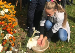 Множество детских ладошек черпали воду из чаши, поливая цветы, символично делясь драгоценной влагой с теми, кому так не хватало воды в заточении у террористов. Всех погибших в этой трагедии почтили минутой молчания.