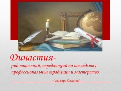 В рамках конкурса под династией понимаются члены одной семьи (супруг (супруга), родители, дети, усыновители и усыновленные, родные братья и сестры, дедушки, бабушки и внуки), отвечающие одновременно следующим условиям: