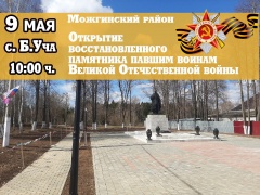 9 мая пройдет открытие восстановленного памятника павшим воинам Великой Отечественной войны в село Большая Уча.