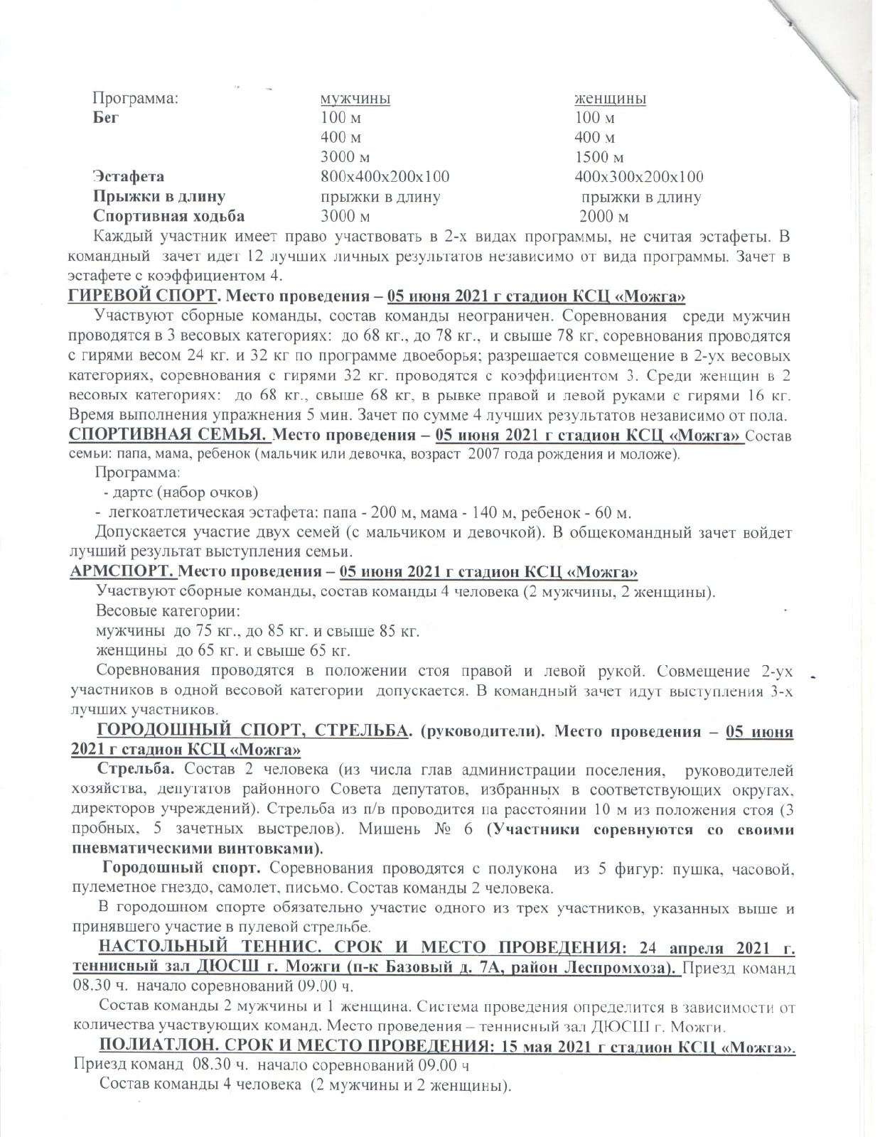 Технические заявки по видам спорта на участие принимаются до 04 июня 2021 года до 15.00 часов в секторе спорта и молодёжной политики