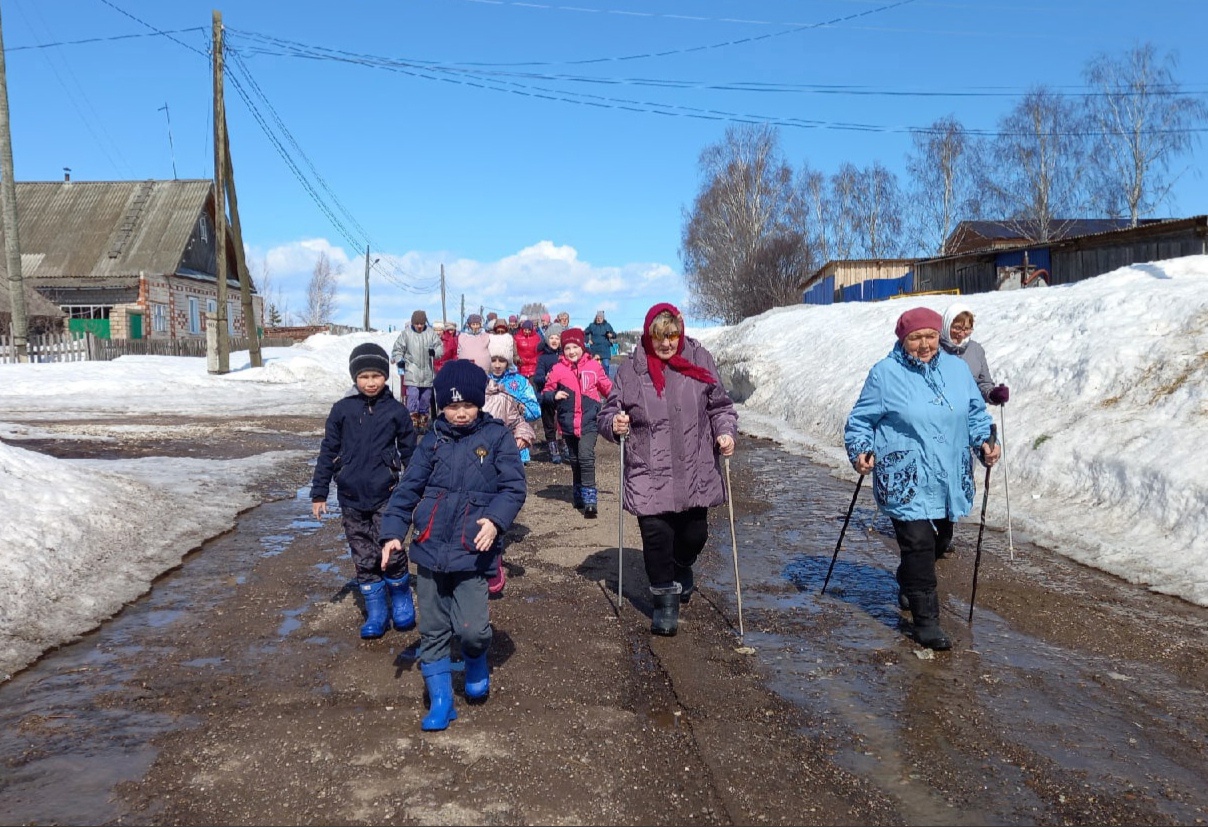 В д.Старые Какси сторонники здорового образа жизни приняли участие в 6 километровом марафоне по скандинавской ходьбе.