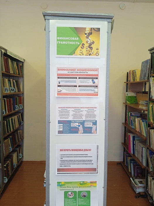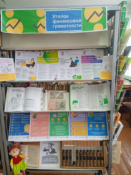 В рамках повышения финансовой грамотности населения и формирования финансовой культуры в филиалах сельских библиотек муниципального бюджетного учреждения «Можгинская межпоселенческая центральная районная библиотека» оформлены Уголки по финансовой грамотности (филиалы Комякской сельской библиотеки, Маловаложикьинской сельской библиотеки, Малосюгинской сельской библиотеки, Нынекской сельской библиотеки, Пазяльской сельской библиотеки, Пычасской сельской библиотеки, Русскопычасской сельской библиотеки, Сарданской сельской библиотеки, Староберезнякской сельской библиотеки, Старокаксинской сельской библиотеки). Фото прилагается.