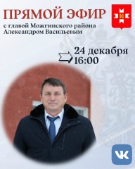24 декабря в 16:00 часов глава Можгинского района Александр Васильев проведет очередной прямой эфир.