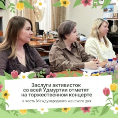 Концерт для женщин-волонтёров состоится 3 и 4 марта в Государственном театре оперы и балета Удмуртской Республики. Также 3 марта в 15:00 состоится торжественное награждение участниц конкурса «Женщина года».