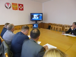 24 сентября 2015 года в муниципальном образовании «Можгинский район» состоялось совещание в режиме видеоконференцсвязи под руководством С.А. Токарева, заместителя Председателя Правительства Удмуртской. Рассмотрены вопросы: - об итогах работы отрасли животноводства по Удмуртской Республики за 8 месяцев 2015 года; - о ходе уборки зерновых культур в районах Удмуртской; - о распределении субсидий из бюджета Удмуртской Республики бюджетам муниципальных образований в Удмуртской Республике в 2015 году. Поставлены задачи: - подвести итоги сельскохозяйственных работ к празднованию «Дня работника сельского хозяйства и перерабатывающей промышленности» во всех сельскохозяйственных организациях и в районах; - подготовить предложения по Государственной поддержке на 2016 год. В работе совещания приняли участием А.А. Прохоров, Министр сельского хозяйства и продовольствия УР, заместители Министра сельского хозяйства УР- А.А. Вихарев, О.Н. Чуйко, Е.И. Шкарупа. От Администрации района присутствовали В.В. Головашов, глава Администрации района, первый заместитель – начальник Управления сельского хозяйства, В.Т. Дерюгин, специалисты Управления сельского хозяйства Администрации района и руководители сельхозорганизаций Можгинского района.