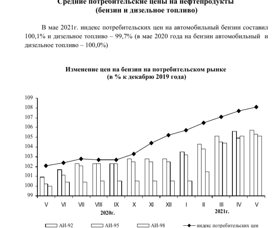 Средние потребительские цены на нефтепродукты (бензин и дизельное топливо)