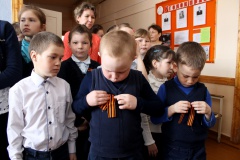 23 апреля на общешкольной линейке прошло закрытие выставки и проведена акция «Георгиевская лента». Все присутствующие с интересом слушали об истории возникновения акции, её девизе «Я помню! Я горжусь!», многие были удивлены, узнав, что данная акция проходит не только во всех регионах России, но и в более чем 70 странах мира. В заключение все присутствующие получили Георгиевскую ленточку.
