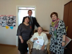 07 мая 2018 года заместитель главы Администрации района по социальным вопросам Сарычева М.Н., начальник Отдела социальной защиты населения в Можгинском районе Ашихмина Н.Б., глава МО «Пычасское» Шихарев А.А. поздравили с 90-летием Коробейникову Лидию Егоровну, жительницу с. Пычас. В адрес юбиляра были сказаны теплые слова и вручено персональное поздравление Президента Российской Федерации В.В. Путина. Лидия Егоровна всю свою жизнь посвятила труду. Свою трудовую деятельность начала в тяжелые военные годы, награждена медалью «За доблестный труд в Великой отечественной войне 1941-1945 г.г.». В 1983 году Лидия Егоровна награждена медалью «Ветеран труда», в 1996 году ей присвоено звание «Ветеран труда». Вместе с мужем воспитали троих детей (сына и двух дочерей), все трое получили высшее образование. С 1983 года Лидия Егоровна на заслуженном отдыхе: сад, огород, домашнее хозяйство, помощь в воспитании внуков и правнуков (3 внука и внучка; 3 правнучки и один правнук). |
