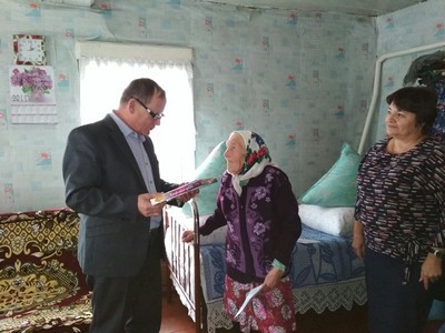 Поздравительное письмо от Президента РФ Путина В.В зачитала заместитель главы Администрации МО "Можгинский район" Сарычева М.Н., поздравила с юбилеем и вручила подарок от Администрации района, заместитель начальника ОСЗН района Чернова А.В. также приехала с подарком и теплыми словами поздравления.