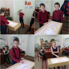 Самая интересная часть — это игра. Участники игры поделились на пары, каждая пара по очереди выбирали карточки со словами на удмуртском языке. Один участник объясняет другому значение слова -жестами или используя только звуки, а другой рисует на световом столе значение удмуртского слова.