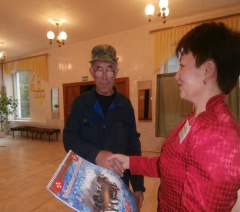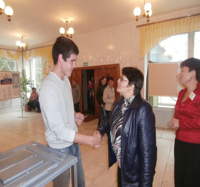 Первым пришёл голосовать Колпаков В. А., работник ООО «Какси». Председатель избирательной комиссии Макарова Т.М. подарила ему небольшой подарок на память – календарь о Можгинском районе.