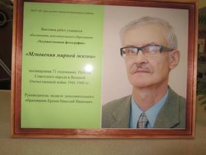 Выставка работ учащихся объединения дополнительного образования «Художественная фотография» (руководитель Ершов Н.И., педагог дополнительного образования МКОУ ДО «Дом детского творчества Можгинского района») под названием «Мгновения мирной жизни», посвященная 71 годовщине Победы Советского народа в Великой Отечественной войне 1941-1945 гг. открылась в здании Управления образования Администрации МО «Можгинский район». На выставке представлены работы детей и их руководителя, сделанные за учебный год.