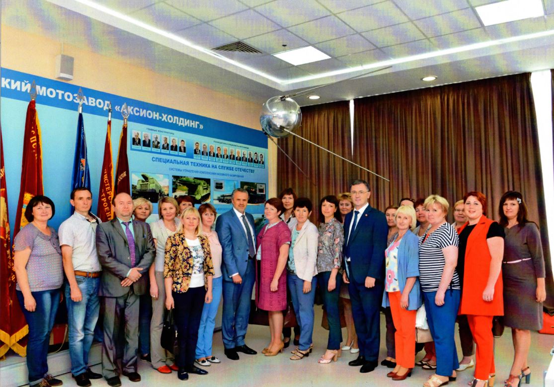Экскурсия на «Ижевский мотозавод «Аксион-холдинг»12 и 14 июля состоялась поездка руководителей образовательных учреждений Можгинского района на АО «Ижевский мотозавод «Аксион-холдинг» — современное многопрофильное стратегическое приборостроительное предприятие оборонно – промышленного комплекса страны. Первое знакомство с АО «Ижевский мотозавод «Аксион-холдинг» состоялась под руководством директора Центра подготовки кадров Г.И. Бакулиной, которая познакомила с Учебным центром, где работники предприятия имеют возможность обучаться и получать профессии в современных условиях и технически оснащённых помещениях. Далее посетили Экспоцентр «Аксион», который является структурным подразделением предприятия и занимается формированием имиджа предприятия, патриотическим воспитанием молодёжи, осуществлением просветительской деятельности. Руководители образовательных организаций увидели продукцию выпускаемую «Аксион-холдинг»: мотоциклы, стрелковое оружие, телеметрические комплексы для обеспечения полетов коммерческих кораблей, специальной и медицинской техники (кардиографов), товары народного потребления, аппаратуры связи. По завершению экскурсии, за круглым столом, руководители имели возможность пообщаться и задать вопросы Генеральному директору Корпорации «АКСИОН» Сидорову Сергею Анатольевичу и Депутату Государственного Совета Удмуртской Республики по Можгинскому району Вершинину Алексею Павловичу. Директорами школ была поднята проблема развития технического творчества обучающихся, в частности – робототехника, в образовательных организациях Можгинского района, так как это на сегодняшний день является одной из актуальных и приоритетных задач развития отрасли образования. Этот вопрос заинтересовал С.А. Сидорова и был взят на изучение. Руководители образовательных учреждений благодарят Сидорова С.А. и Вершинина А.П. за добрый приём, открытый диалог. Для общественности важно знать, что Удмуртия, благодаря таким предприятиям как «АКСИОН», вносила и вносит большой вклад в развитие Республики и в целом Российской Федерации.